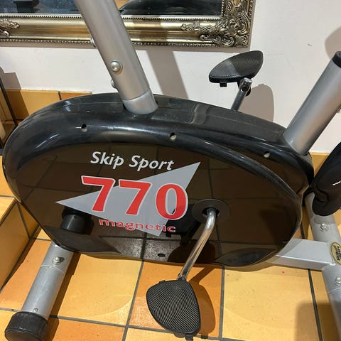 Abilica motionscykel med luftmotstånd. Cykeln har handtag som rör sig fram och tillbaka för träning av både över- och underkropp. Utrustad med sadel, pedaler med fotremmar och ett enkelt displayfönster som kan visa grundläggande träningsdata (till exempel tid och uppskattad hastighet, beroende på modell). Färg i huvudsak grå med svarta detaljer. Lämplig för hemmaträning och konditionsträning där motståndet ökar automatiskt ju snabbare man trampar.