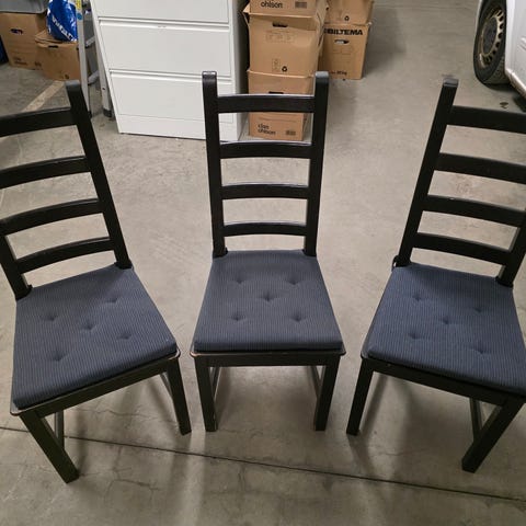 5 st stolar, hela och fungerar men är väl använda, visst slitage med skavmärken på någon av stolarna. Stolarna är stapelbara.