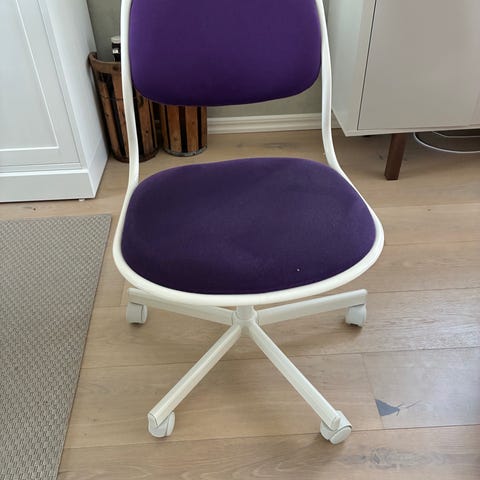 Svart skrivbordsstol i mycket fint skick säljes. Konstläder förutom på baksidan som är klädd i konstläder/textil. Justerbar höjd. Mycket bekväm att sitta i. Mått se sista bilden. Nypris 1295kr