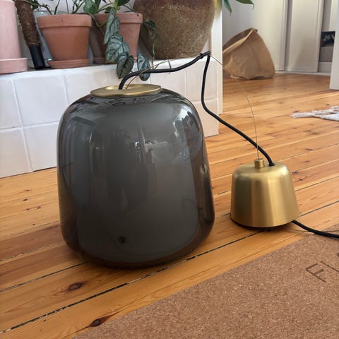 Jättefin bordslampa från IKEA där inre vita glasdelen har tyvärr gått sönder. Fin ändå och kan användas.