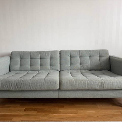 Rymlig och bekväm soffa i fint begagnat skick. Finns några dova fläckar.