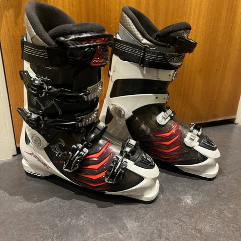 Storlek 27-27.5 eller ungefär storlek 43, relativt breda i foten och fungerar fint. Spännen och kardborreband fungerar också bra. Synligt använda men funktionen är fortfarande som den ska. Går att testa i Göteborg