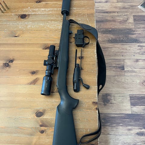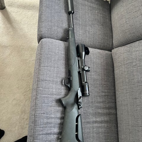 Blaser R8 Professional Success i vänsterutförande med justerbar kolvkam från kolvkam.se och Stalon ljuddämpare. Kal .308.