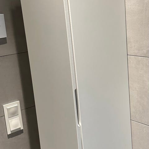 Skåp på ben som är använt till bänk ovanför tvättmaskin och torktumlare. Har klick-funktion när man öppnar luckorna. Väldigt bra förvaring för handdukar och liknande grejer. Går såklart att ha någon annan stans än i badrummet också.