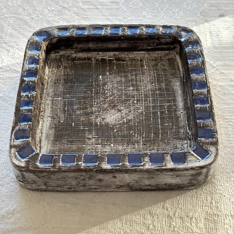 Säljer här en fin skål/fat i stengods av Mari Simmulson för Upsala-Ekeby. Storlek 23 x 13,5 cm, höjd ca 5 cm. Är i fint skick utan skador.