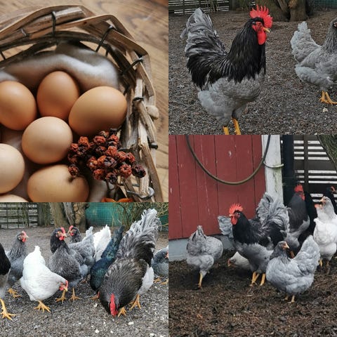 Hybriderna värper tillsammans ca 1 ägg per dag och är inte längre i topp-produktion.