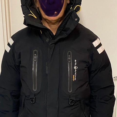 Svart dunjacka/vinterjacka av Sail racing. Två jättesmå hål på ryggen som man inte lägger märke till.