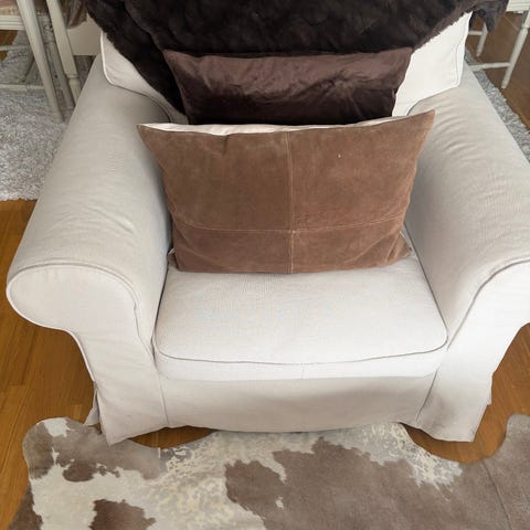 Fåtölj och fotpall: 2500kr, nypris 4490kr