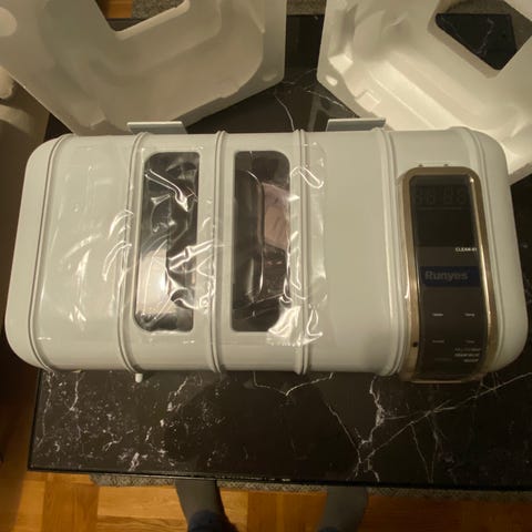 Luxorparts VGT-6250 ultraljudstvätt med effekt på 165 W. Utrustad med digital display och touchknappar för tidsinställning och programval. Lämplig för rengöring av exempelvis smycken, klockor, glasögon, mynt, rakblad, tandläkar- och verktygsdetaljer samt mindre elektronikdelar enligt illustration på förpackningen. Drivs med nätström (AC 220–240 V / 50 Hz). Endast öppnad och testkörd, felinköpt!