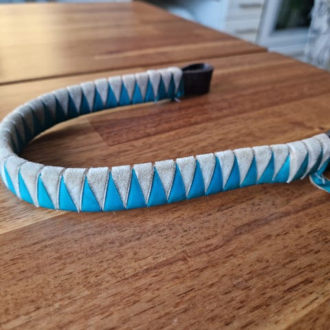 Get the Gallops ikoniska hajtands pannband i grönt läder. Pannbandet har vadderad ovansida med dekorativ söm och slät undersida i brunt läder. Levereras med tygpåse med tryckt logotyp.