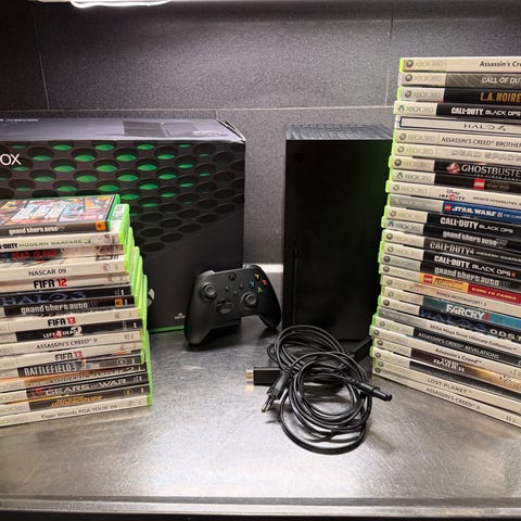 Säljer min Microsoft Xbox Series X spelkonsol med 1TB hårddisk. En handkontroll och 6 spel ingår.