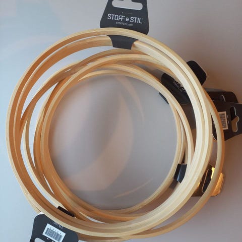 Runda ringar av bokträ för pyssel och dekoration av cirka 18.5 cm i diameter. Tunn, slät ring i ljust trä, lämplig för olika hantverksprojekt som makramé, väggdekorationer, kransar eller mobilhängare. 17 stycken likadana ringar i samma storlek.