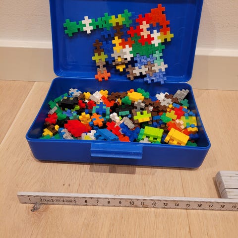 Plus Plus Mini byggbitar flerfärgade i förvaringslåda