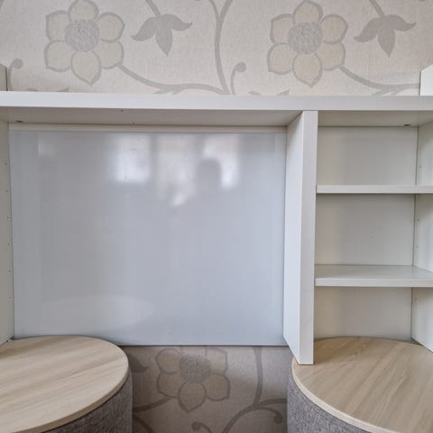 Säljer ett hörn skrivbord.
