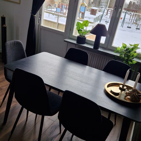 Säljer Mio Savona matbord + 5 stolar från Mio i modell Sharon Karmstol, då vi flyttar.