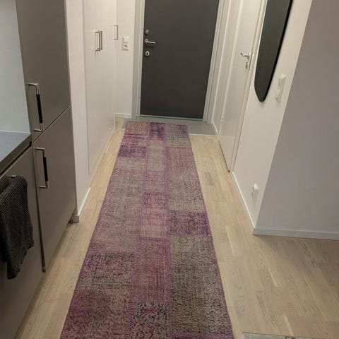 Katt finns i hemmet. Mattan är rengjord med Vanish mattrengöring inför försäljning.