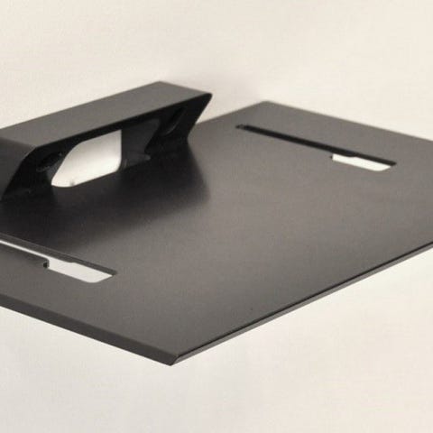 Helt ny pulverlackerad vagga för montering på L-rack och huvar. Självhäftande kardborreband medföljer för montering av mindre enheter.