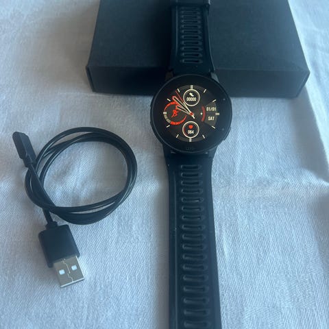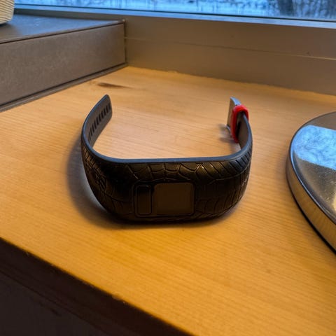 Beurer aktivitetsarmband i svart med digital display. Visar bland annat tid och steg samt har pekknapp på framsidan för att bläddra mellan funktioner. Armbandet har justerbart spänne och laddningskontakter på baksidan. Passar för vardagsanvändning och enklare aktivitetsmätning. Har tyvärr igen laddare. Billigare vi snabb affär