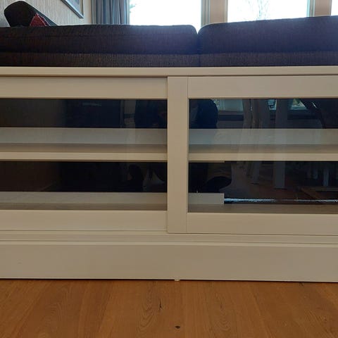 Fin tv-bänk med skjutdörrar Malsjö från Ikea. Säljes pga platsbrist vid flytt. Mått: 160x48x59
