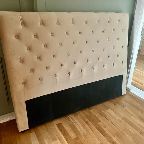 Sänggavel från Englesson i mörkblå sammet med nitar. Passar till en 180 cm säng.