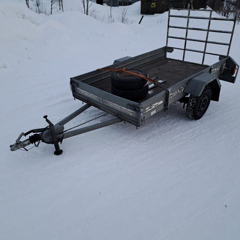 Står lastad och klar för nya äventyr på ett nybesiktat släp Brenderup S1938 från 2016