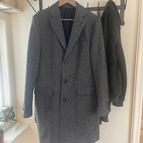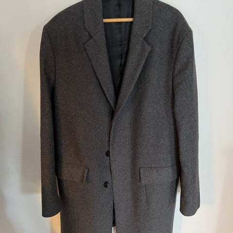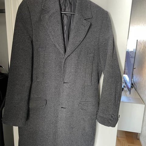 Massimo Dutti ullrock för herr i storlek 48. Rocken är grå och tillverkad i 100% ull med klassisk krage och knäppning framtill. Fodrad insida för ökad komfort. Obetydligt använd, nyskick.