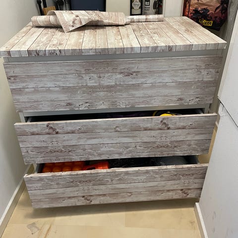 Säljer en designbyrå som står i förrådet. Fin blå färg.