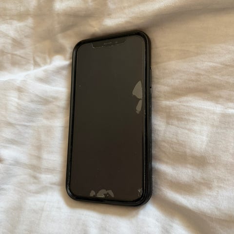 Hej, Mitt namn är Miranda och jag ska sälja en iPhone XS som ni ser på bilderna är den lite skadad men det är inget som påverkar mobilen den funkar ganska bra. 75% baterihälsa, bra som en extra telefon, hör av er vid mer info