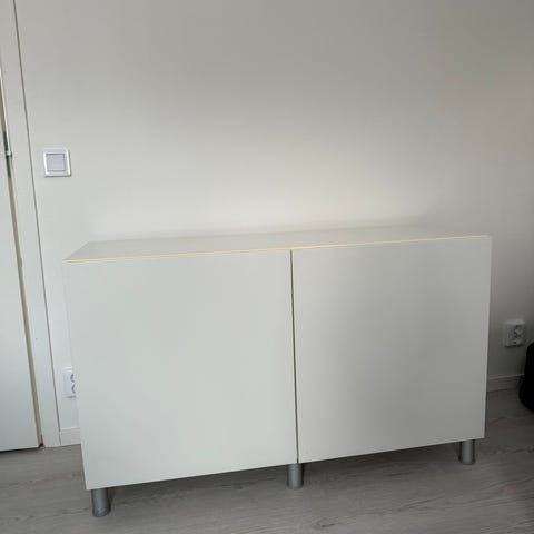IKEA bänk i vit färg. Skåpet har tre dörrar och flera hyllplan på insidan för förvaring av exempelvis lådor, textilier eller andra hushållsartiklar. Passar i vardagsrum, hall, kontor eller andra utrymmen där extra förvaring behövs. Utförande i enkel, rak design som kan kombineras med olika inredningsstilar.