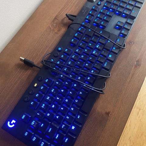 Logitech G915 TKL trådlöst mekaniskt tangentbord med RGB-belysning.