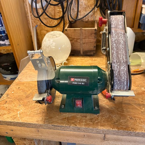 Bänkslipmaskin kombinerad band- och skivslip