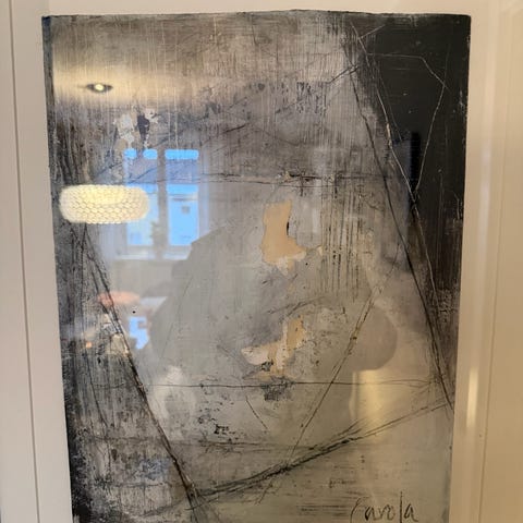 Carola Kastman abstrakt tavla vit beige svart