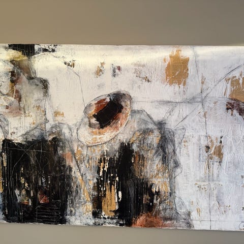 Abstrakt tavla med motiv i grå och svarta toner. Konstverket har ett expressivt, strukturerat mönster med linjer och skiftningar i färg. Passar som väggdekoration i exempelvis vardagsrum, hall eller kontor. Ram och exakta mått framgår inte av bilden.