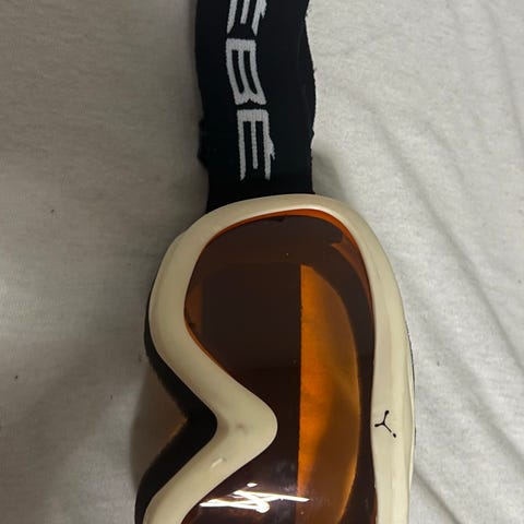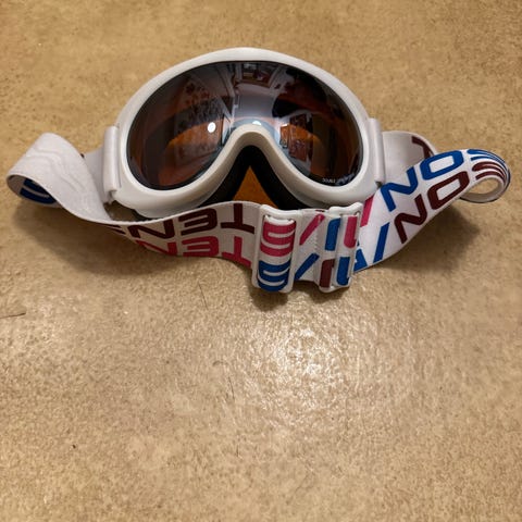 Scott skidglasögon med brun tonad lins och vit ram. Justerbart elastiskt band med Scott-logotyp runt huvudet, som kan justeras för olika storlekar.