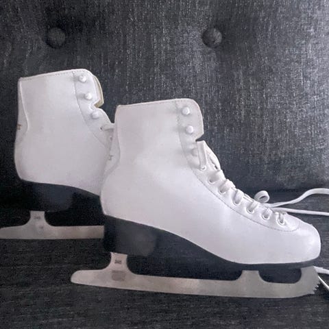 Spinn konståkningsskridskor för barn i storlek 34. Ett märke på ena sidan.