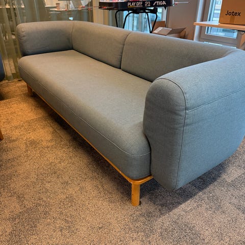 Blå(Petrol) Soffgrupp från Bolia med 3-sits soffa och två fåtöljer med mycket slittåligt tyg.