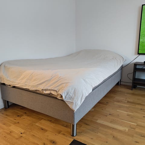 Mio kontinentalsäng 120 bredd i grått tyg m sänggavel 120*120*9. Passar som enkelsäng eller mindre dubbelsäng i sovrum eller gästrum. Neutralt grått utförande som är lätt att kombinera med olika textilier och inredningsstilar. Säljes pga flytt