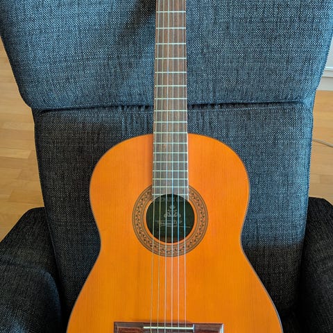Välfungerande, trevlig gitarr med skön, fyllig klang. Den har en del stötmärken och repor, samt en brännskada från en värmelykta, som du kan se på bilden. I övrigt fungerar den utmärkt och har rak hals och välfungerande stämskruvar. Garanti och ångerrätt enligt Konsumentköplagen. Flera bilder eller filminspelning går att fixas.