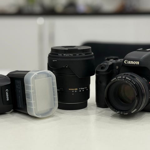 Allt på bilden säljes som ett stycke, nypris runda slängar 100.000kr. Fantastiska objektiv och stativ, batterigrepp, blixtar, filter, minneskort och ryggsäck