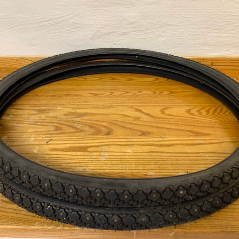 Två st dubbdäck passande Rawbike 750w. Använda men ser ut att ha mycket kvar att ge. Titta noga på bilderna och bedöm gärna själv.