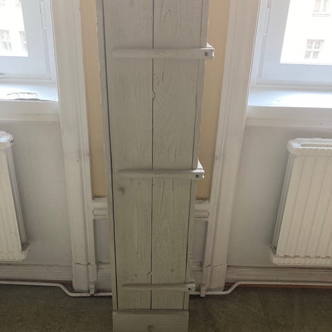 Säljer ett stilrent och smalt förvaringsskåp i högblank röd finish. Perfekt när man vill ha praktisk förvaring men samtidigt en färgstark inredningsdetalj.