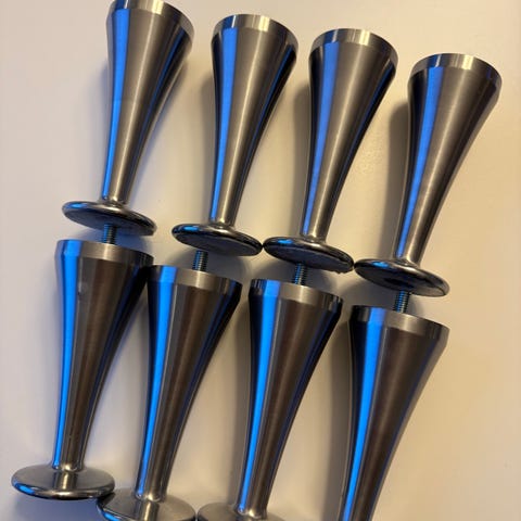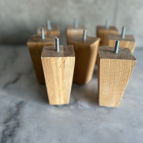 Mio sängben i trä. Fyra koniska ben med metallskruv för montering på säng eller sängram. Passar som utbytbara ben till kompatibla Mio-sängar eller andra möbler med motsvarande fäste.
