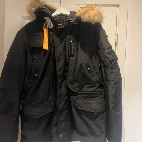 En jättefin ny parajumber, lång varm dun jacka storlek L men slim,