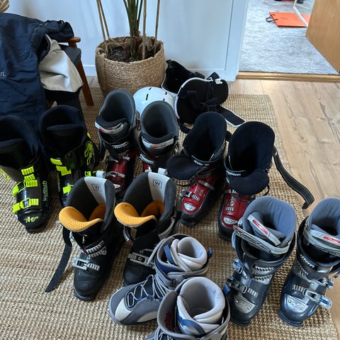 Skidor alpin 70, 90, 100, 110, pjäxor, skridskor, hjälm