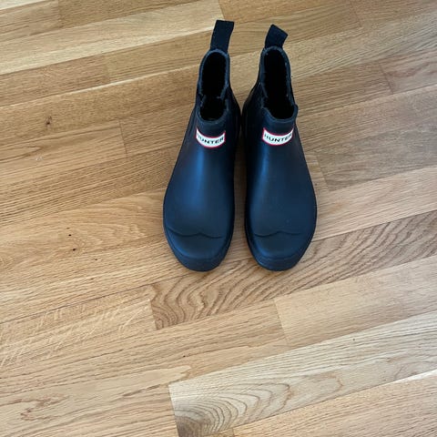 Hunter Downpour gummistövlar i svart, storlek 38. Höga stövlar i gummi med räfflad sula för bättre grepp. Unisexmodell som passar för användning i regn och blöta miljöer, till vardags eller utomhusaktiviteter. Klassisk Hunter-logotyp framtill på skaftet. 299kr nypris 1600kr