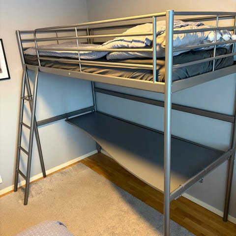 Säljer fin bra loftsäng som alltid fungerat mkt bra och är stabil. Vid snabb affär kan priset ev. justeras. Inte ner monterad ännu men går snabbt. Kan sälja skrivbordet som är hemgjort och står under för 600 kr också vid intresse.