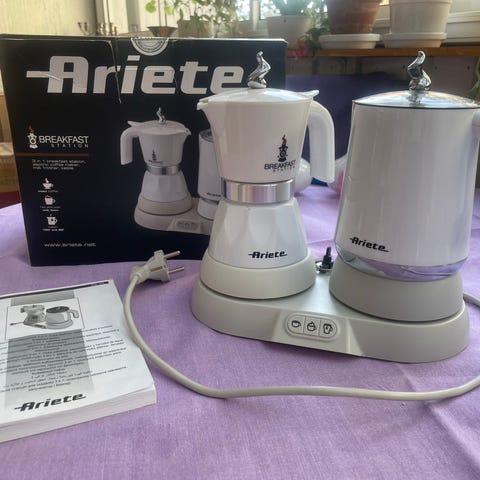 Portly kaffebryggare med kapacitet på 1,1 liter, motsvarande cirka 2–6 koppar kaffe. Bryggaren är vit och har vattenbehållare i genomskinlig plast. Effekten är 700 W och den är avsedd för 220 V. Utrustad med av/på-knapp med indikatorlampa. Lämplig för mindre hushåll, kontor eller fritidsboende där man vill brygga upp till 6 koppar kaffe åt gången. Kvittot finns inne. Varan var aldrig i bruk.