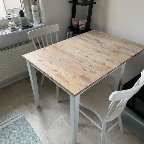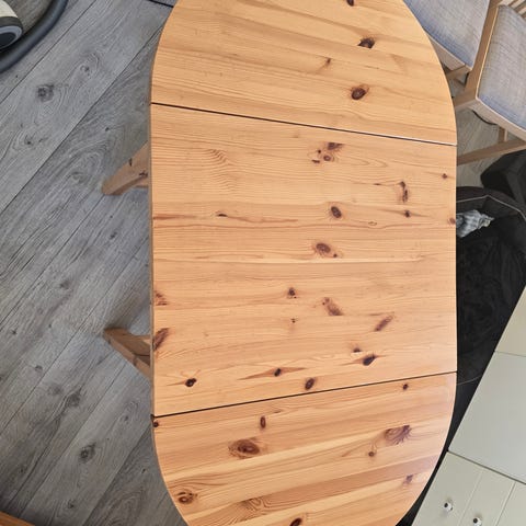 Klaffbord IKEA Ingatorp. Märken på bordsbenen av stolarna (se bilder), annars bra skick. Stolar ingår. Kan endast hämtas i Falun 21/2.