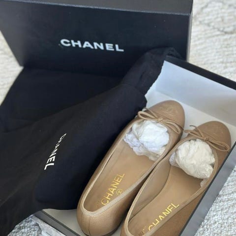 Chanel ballerinas in lambskin, size 37.5 (I normally wear 37). Purchased in 2017 at the Chanel boutique on Champs-Élysées in Paris. Timeless, very comfortable, and in beautiful condition. Selling because they no longer fit me. Includes original box and dust bag.