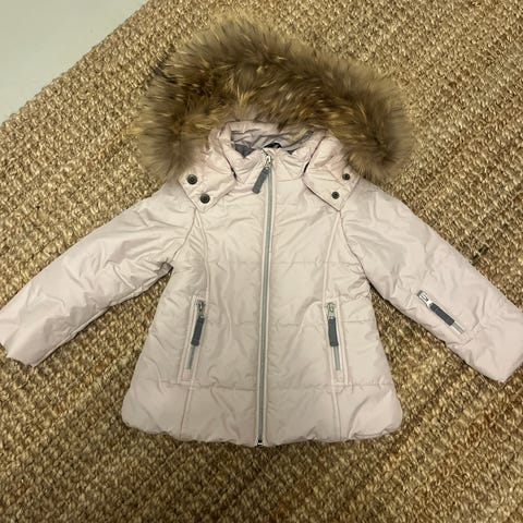 . Overall i vit färg med dunfyllning och huva. Modellen är unisex och passar både flickor och pojkar. Ytterplagg som ger värme och täckning, lämplig för kallare väder. Dragkedja och knappar framtill för enkel på- och avklädning.